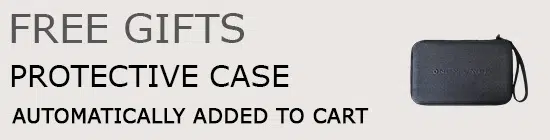 "Dárky zdarma - ochranné pouzdro automaticky přidáno do košíku." Obrázek zobrazuje jednoduchý banner s textem propagujícím dárek v podobě ochranného pouzdra zdarma, který je automaticky přidán při nákupu. Na pravé straně je obrázek ochranného pouzdra.